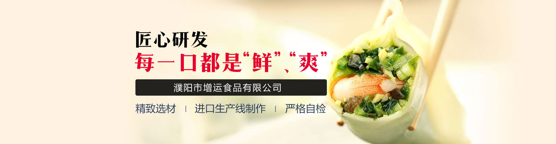 河南·濮陽增運食品有限公司位于龍的故鄉--濮陽,是一家生產速凍米面食品的專業公司,著力打造“增運”品牌,產品主要有速凍水餃、湯圓、餛飩等三大類,主要以水餃、餛飩為主。公司擁有兩個先進加工車間,一個凍品加工車間,能滿足各種速凍產品的加工需求。
